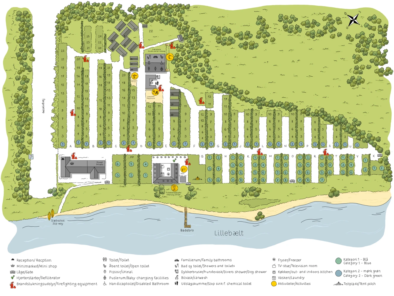 Selvfølgelig finder du vores affaldscontainere i nærheden af sanitetsbygningen. Bemærk venligst, at containerne kun er beregnet til dit husholdningsaffald. Ødelagte campingmøbler, elektriske apparater eller fiskeaffald må ikke bortskaffes her.